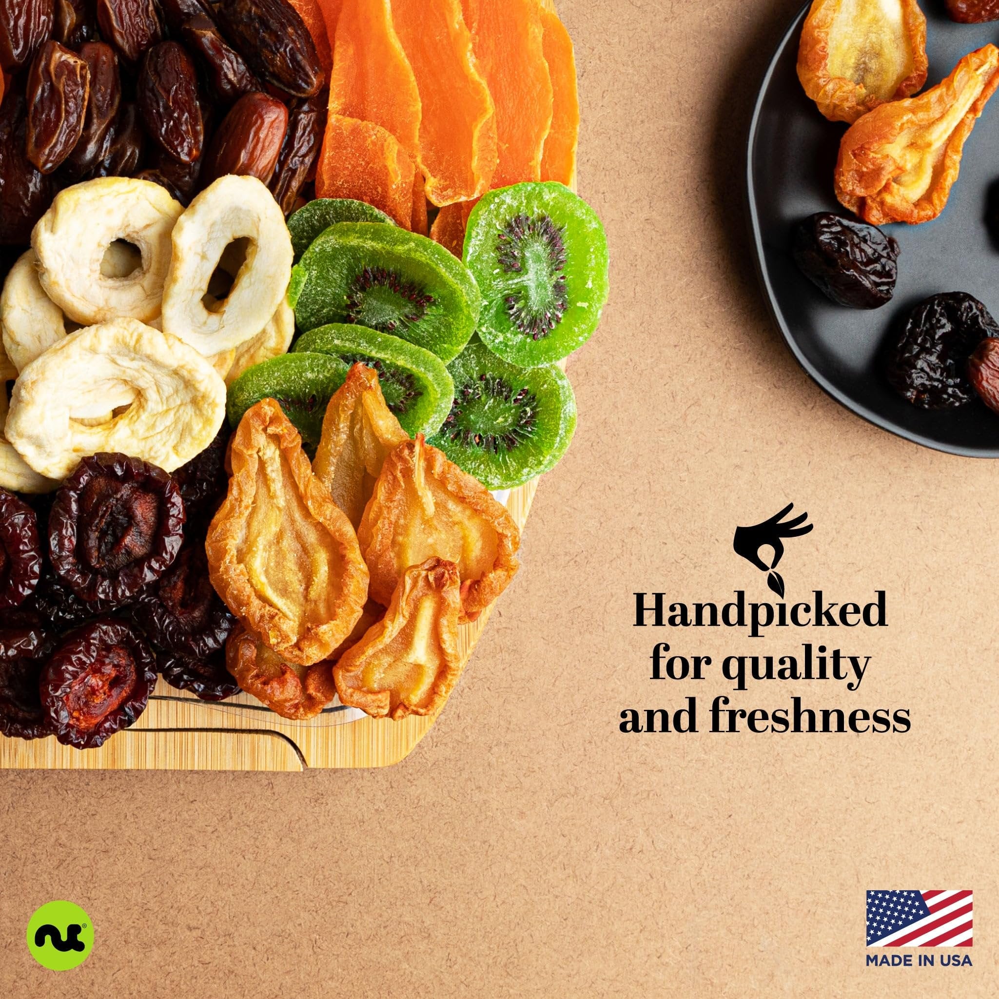 • FRUITFUL PLEASURE: Dive into Nut Cravings' abundant dried fruit basket, loaded with Angelino Plums, Pears, Apricots, Kiwi Slices, Apple Rings, Pitted Dates, Prunes, Mango, and Peaches. A gift that truly speaks the language of love!